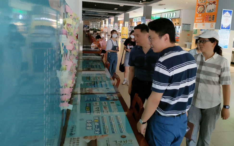 在食堂,刘校长一行巡查了各个窗口并关注食堂菜品种类和安全。领导们在心愿墙前驻足,了解了同学们对食堂的建议和意见,以及对未来美好校园生活的向往和憧憬。刘校长特别叮嘱,一定要为学生们提供新鲜可口的饭菜,一定让同学们吃得安全卫生、营养健康。