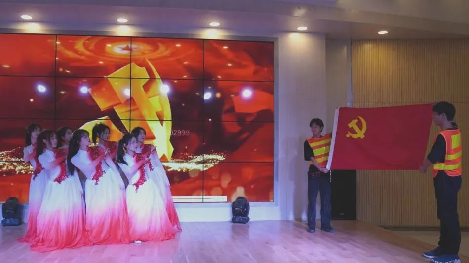 青春心向党,奋进新征程。悠悠中国心,深深赤子情,台上同学们红色的裙摆像极了那随风飘扬的党旗,她们用《党旗飘扬的方向》这支舞展现了党领导下的抗疫斗争,风雨中挺立,挑战中奋进,党旗飘扬的方向,是青春梦想的前方。倾情演绎新时代的大学生不忘初心跟党走,奋力建功新时代的决心。