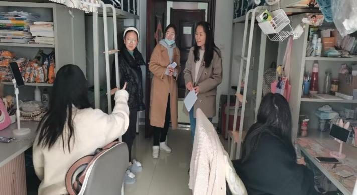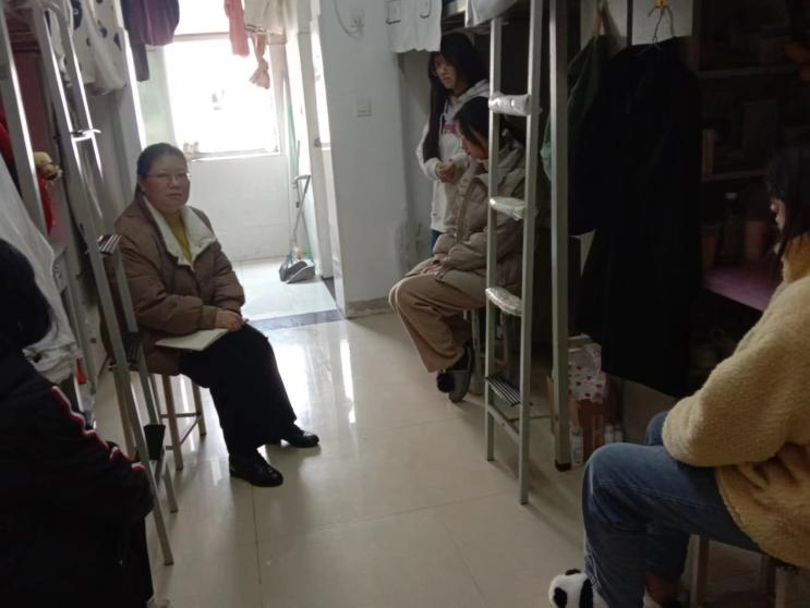 为了深入了解学生,走近学生生活,排查宿舍安全卫生隐患,2023年2月15日中午,在yl7703永利集团党总支书记张晓同志的带领下,全体党员老师以及部分学生党员代表走进22级新生宿舍,开展了“党员进寝室”的访谈活动。