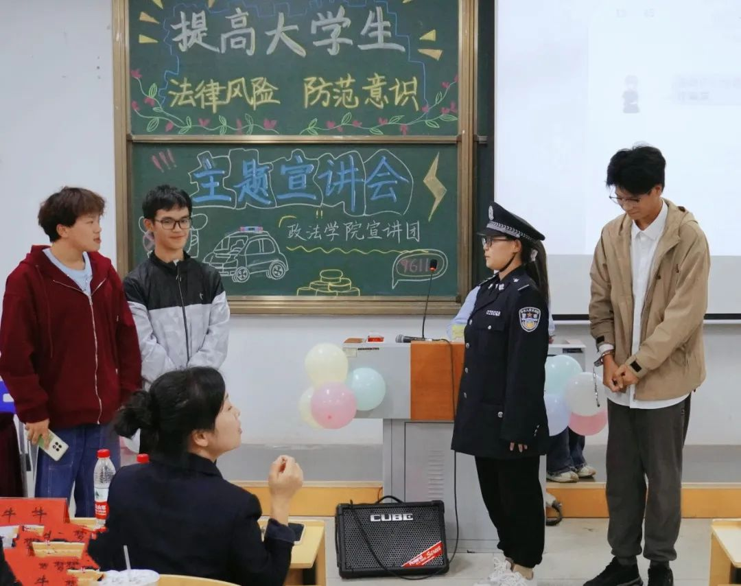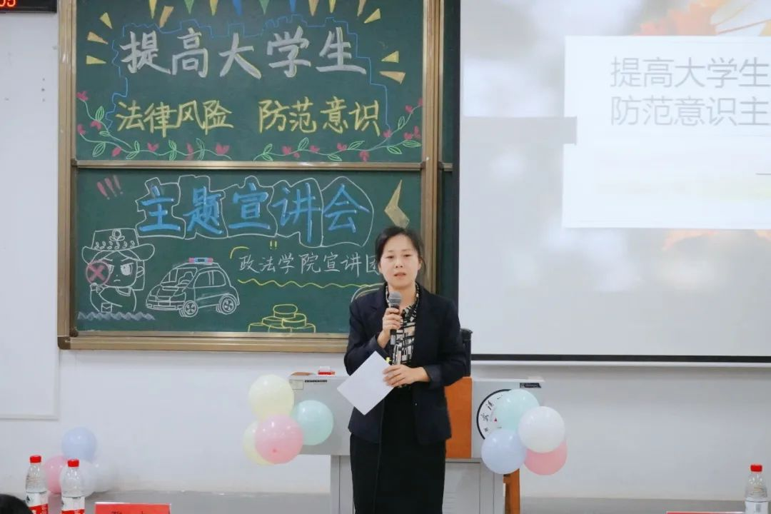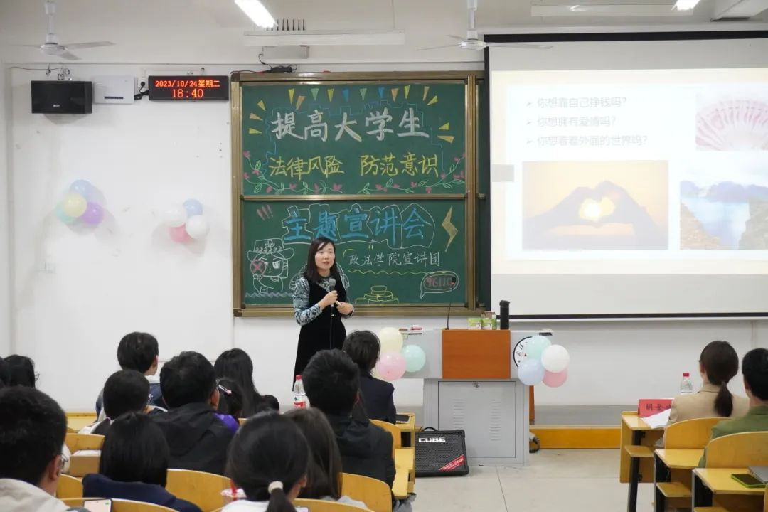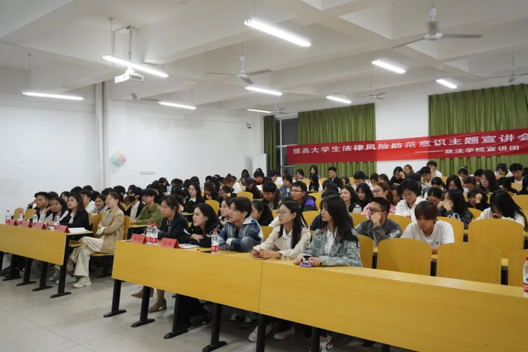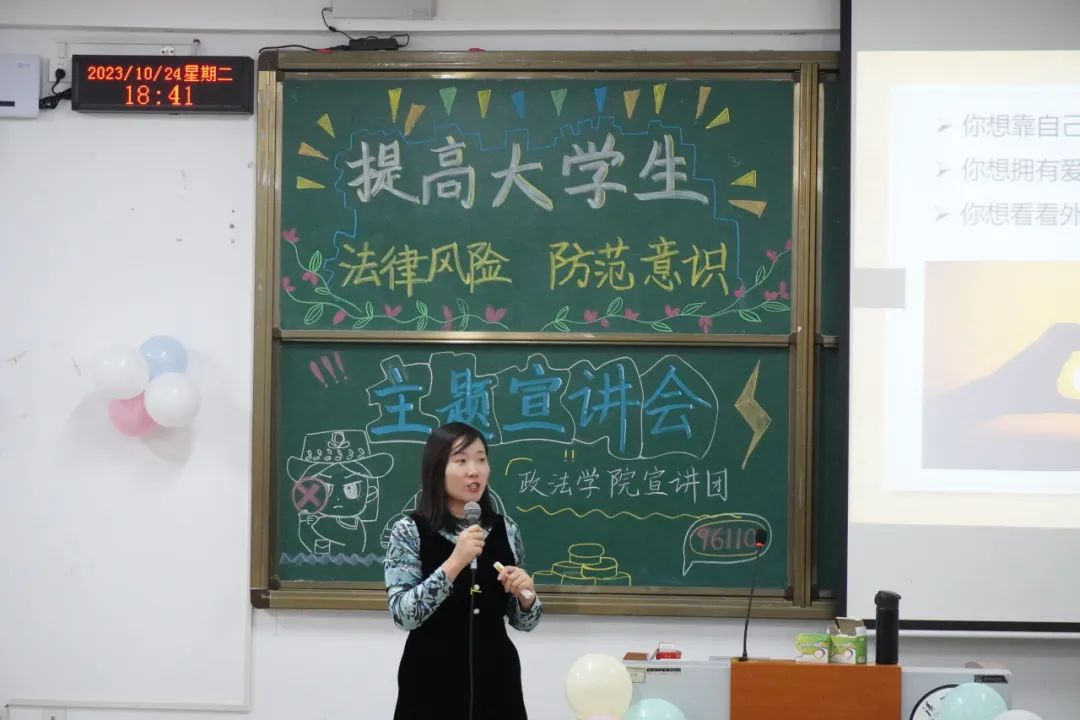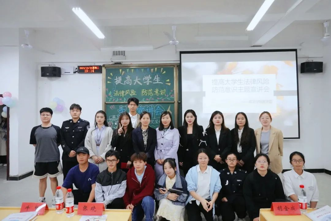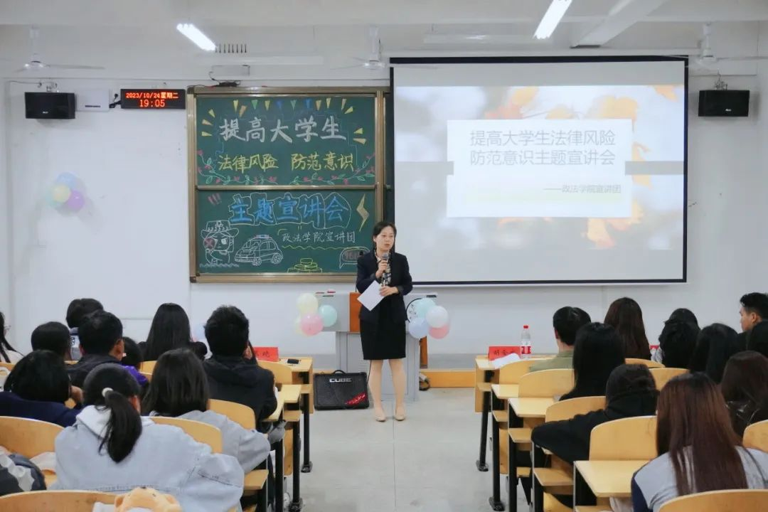 2023年10月24日晚18:20,由yl7703永利集团学生处主办yl7703永利集团承办的“提高大学生法律风险防范意识”主题宣讲会在5-126教室举办,莅临本次宣讲会的嘉宾有:yl7703永利集团党总支书记张晓、法学教师江莲、yl7703永利集团分团委书记牛梦以及各年级辅导员。