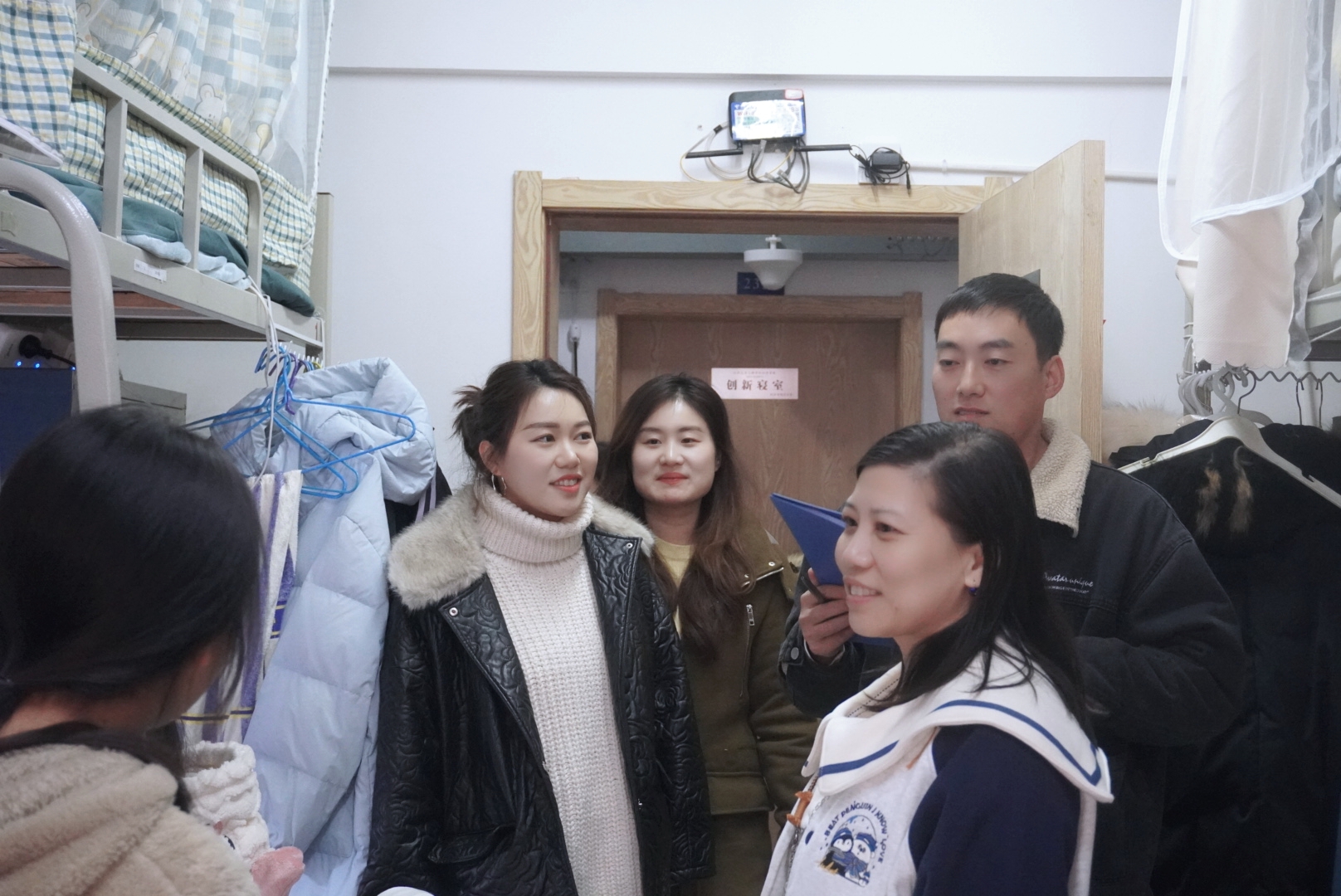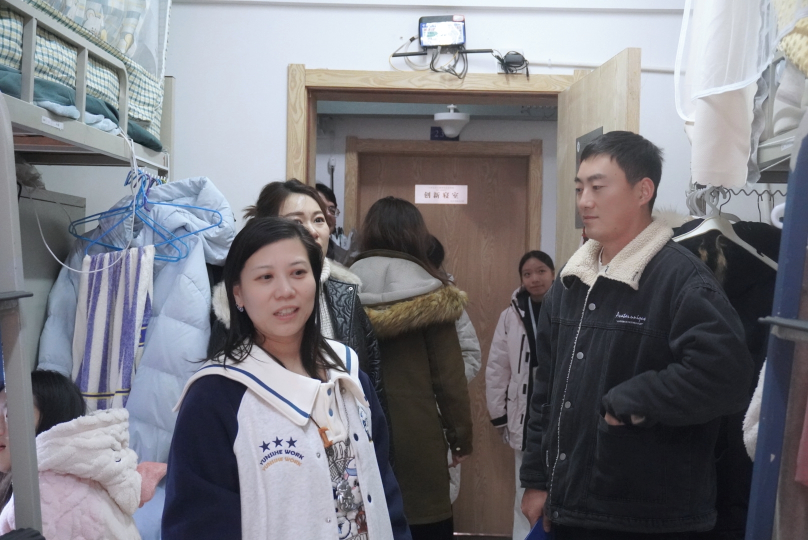 在走访学生寝室的过程中,老师们向同学们表示亲切地问候,了解同学们目前在学习、生活中遇到的问题,并实时为同学们答疑解惑。老师们通过自身丰富的经验,向学生提出建议:同学们要注意劳逸结合,关注身体健康与心理健康;在日常生活中务必注意财产安全、用电安全和人身安全;要加强寝室清洁管理,保持宿舍环境卫生;特别提醒同学们要注意即将到来的考试周,叮嘱同学们做好备考计划,认真复习。