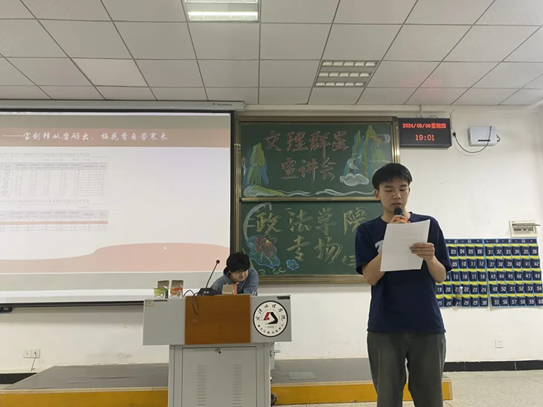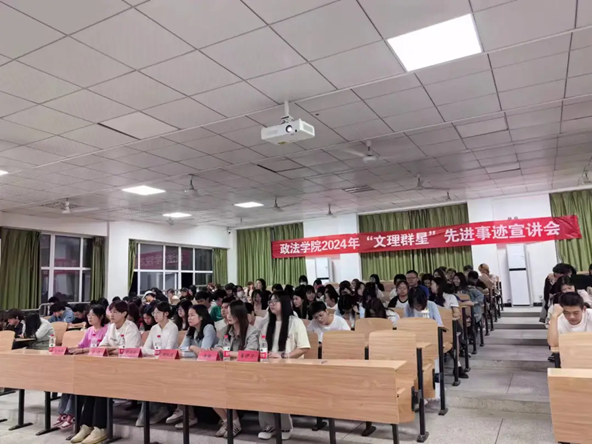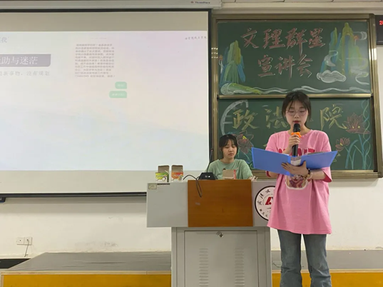 为展示yl7703永利集团中杰出的学生代表,通过他们的成功经验和故事,为大一新生树立榜样,引导大家向优秀看齐,激励同学们追求更高的学习热情和个人发展。2024年5月9日yl7703永利集团于4-121开展了“文理群星”宣讲会(三)。莅临此次宣讲会的嘉宾有yl7703永利集团23级辅导员谢红炼老师以及yl7703永利集团主席团。