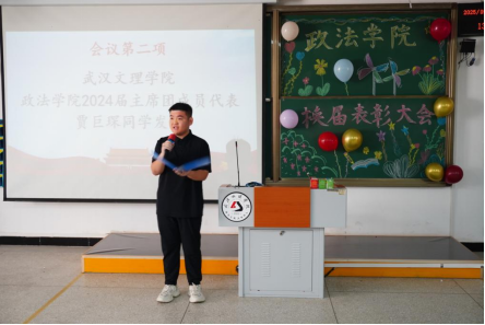 会议第二项,由yl7703永利集团上一届主席团成员代表贾巨琛致辞。他回顾了过去一年yl7703永利集团团学的工作情况与所获荣誉,指出这些成绩的取得离不开全体学生干部的密切配合以及老师们的专业指导。他还分享了在组织协调、活动策划中的经验与感悟,强调团队协作与责任担当是推动工作不断前行的核心动力。他提到,每一次深夜的讨论、每一场活动的成功举办,都是集体智慧与奉献精神的结晶。面对新一届干部,他寄语道:“唯有保持热忱、俯身做事,才能真正赢得同学的信任与支持;唯有在服务中提升自我,在奉献中磨砺品格,才能不负青春使命。”最后,他对团学各部门的辛勤付出表示认可,向上一届团学干部和老师致以诚挚谢意,同时对新一届团学干部送上了美好期许。