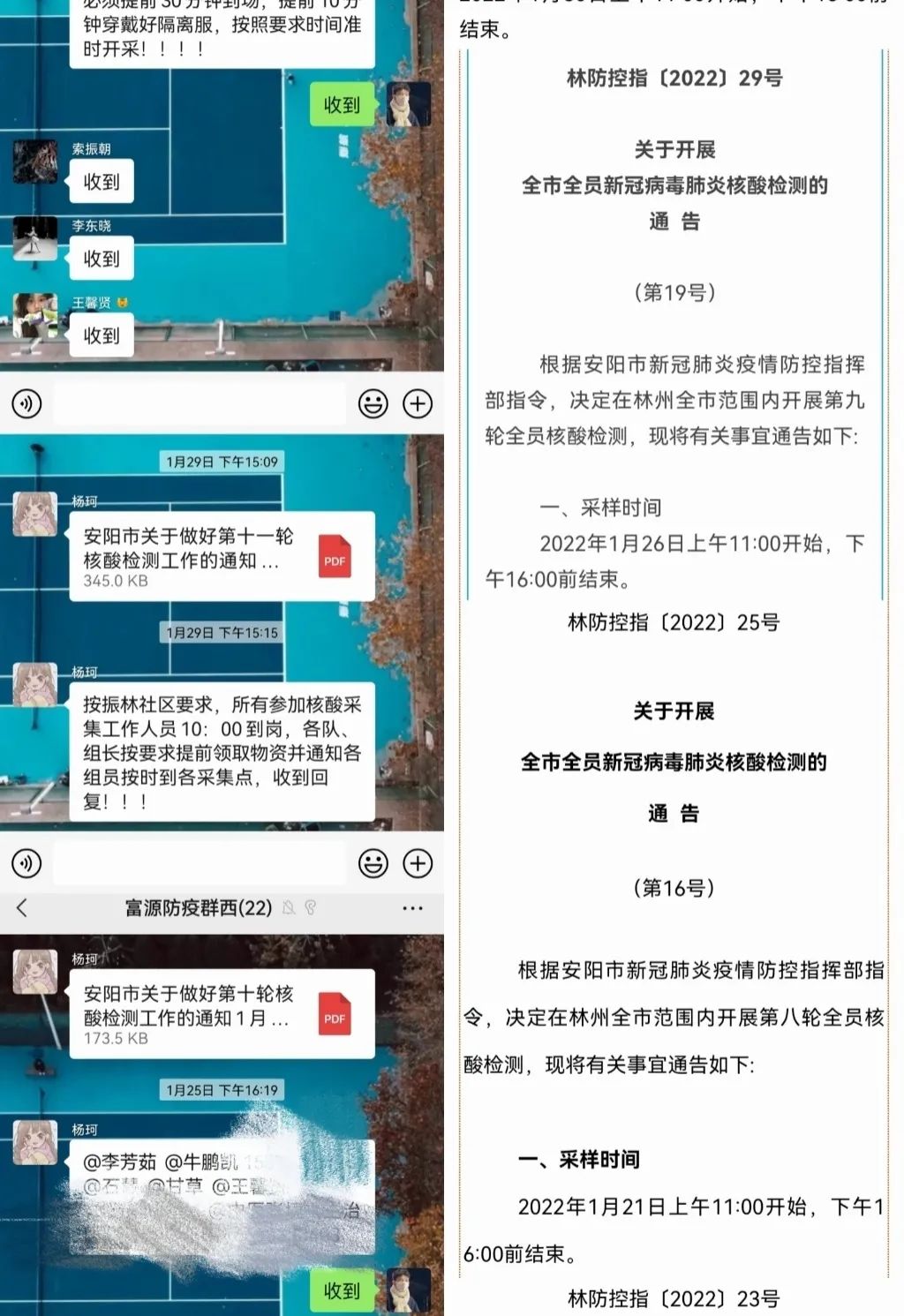 2. 按照安阳市疫情防控核酸检测指挥部工作通知,全市共开展十一轮全员核酸检测,负责全员核酸检测信息采集工作,成为一名信息采集员,并上门入户为居家隔离人员进行核酸采样。