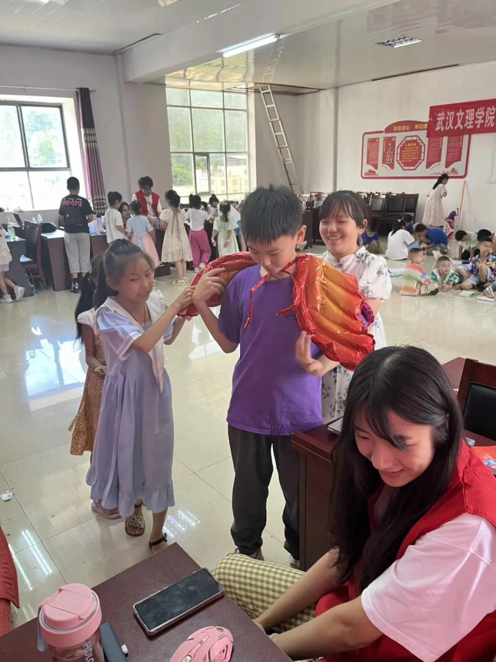 2024年7月29日,青衿之志志愿服务队为沿渡河镇暑期学堂的小朋友们开展了一场积分兑换活动。航天积木、水彩笔、小花盆、蝴蝶气球……桌子上堆满了可以用积分兑换的小礼物,小朋友们按照积分高低,分别兑换着自己喜欢的礼物,露出了开心的脸庞。