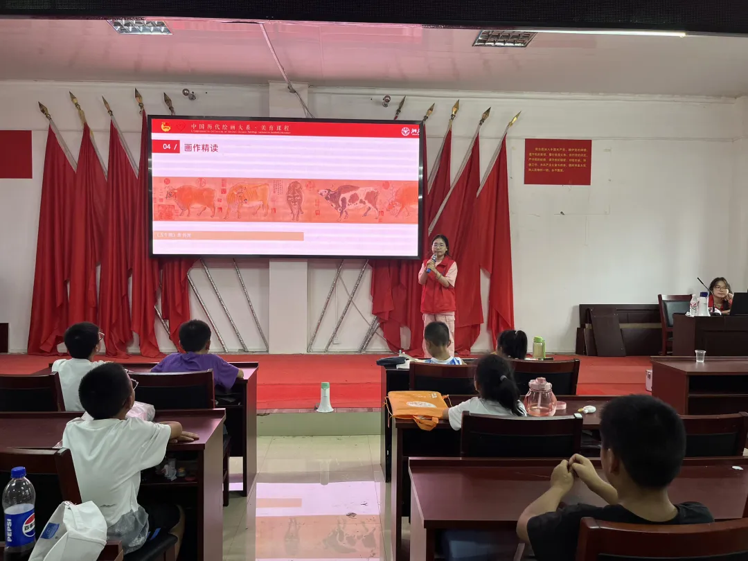 为了唤起同学们对中华传统文化的热爱,加深对中国历代绘画的了解,传承中华艺术的精髓,本次暑期社会实践期间,“青衿之志”志愿服务队总计开展八场绘画大系宣讲,以宣讲课件为主要内容,开展中国绘画的普及讲堂,以春风化雨、润物无声的艺术欣赏,将中国历代绘画大系的精神流入孩子们的心间。