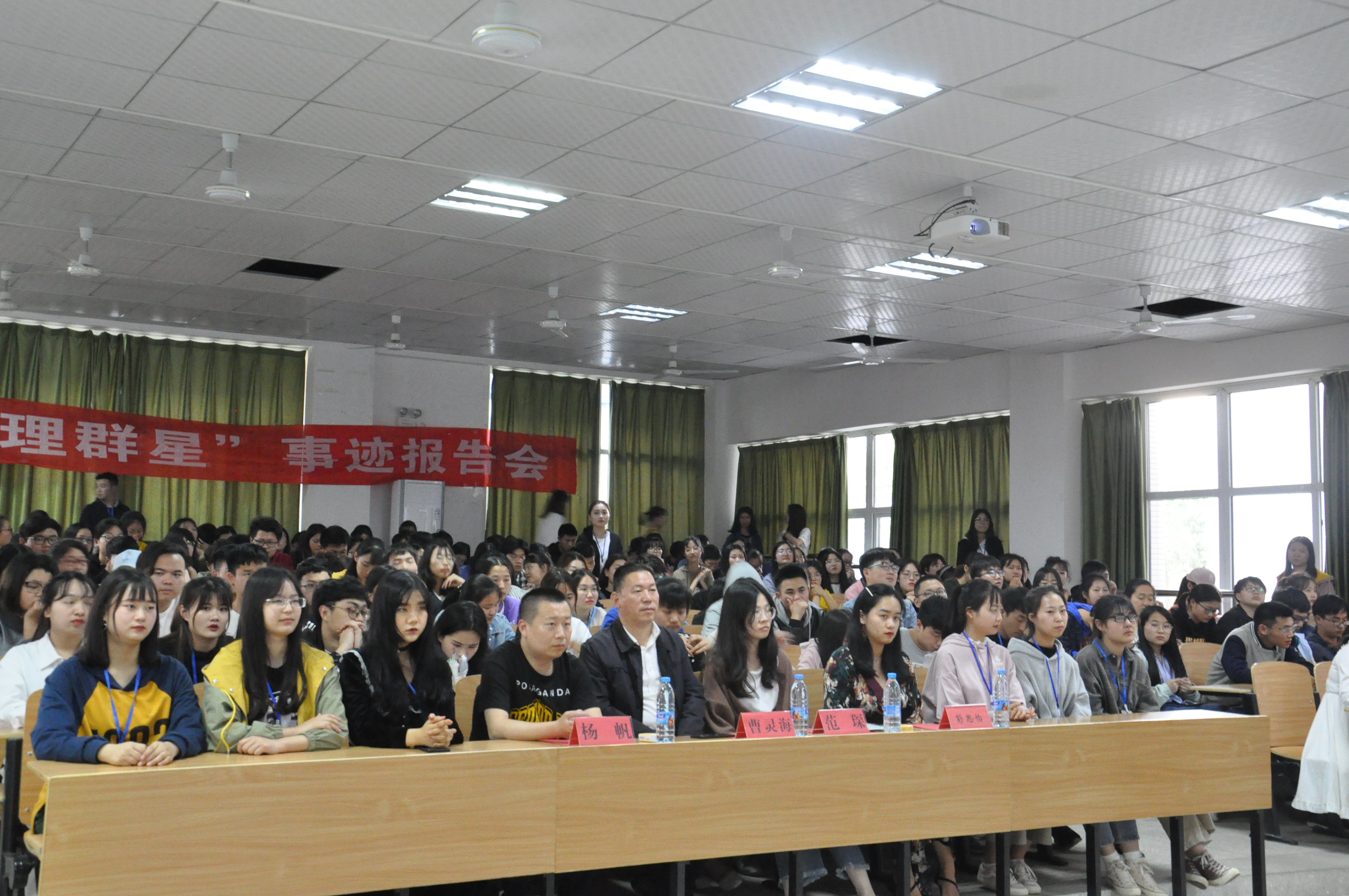 为了帮助正处于困惑、迷茫中的大一学生,给予一些正确的引导、建议,使同学们能够从优秀学子身上寻找经验。江汉大学文理学院yl7703永利集团分团委学生会宣传部和秘书部于2019年4月16日与18日在4-121联合主办了2019文理群星宣讲会,第一场到场老师、嘉宾以及观众有学生处处长曹灵海老师、yl7703永利集团分团委书记杨帆老师、文理群星宣讲会负责人18级带班辅导员范琛老师、yl7703永利集团分团委学生会主席彭思怡、yl7703永利集团分团委学生会各部门部长以及18级部分新生。第二场参会的有学生处处长曹灵海老师、yl7703永利集团院长李蔚老师、yl7703永利集团综合办公室主任刘超老师、文理群星宣讲会负责人18级带班辅导员范琛老师、yl7703永利集团分团委学生会主席罗佳欣、程晨、yl7703永利集团分团委学生会各部门部长以及18级部分新生。