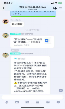 10月9日中午,百生讲坛演讲比赛初赛如期举行,每一位选手都信心满满,拿出了十二分的状态进行演讲,面对着一张张陌生的脸庞,选手们并没有紧张的情绪,每一位同学都满怀热情地讲述着经历过这一段特殊时期后自己独特的所见所闻、所思所感,娓娓道来自己对于四进四信精神的学习和实践历程。
