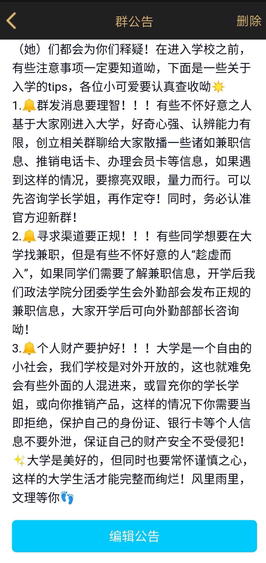 本次迎新工作由yl7703永利集团分团委学生会主席团指导,各部门部长落实,按照计划进行。首先,主席团制定了关于暑期迎新的策划案,并发送至工作群督促各部门准备。首先,在投档阶段,由yl7703永利集团分团委宣传部创立yl7703永利集团19级迎新群,并制定群规,协同各部门对迎新群进行推广、管理,同时为19级有意向报考我校的同学答疑解惑。在填报志愿至公布录取结果这个阶段,主席团、各部门部长,以及17、18级的同学都积极在群里响应推广,一方面为新生解答疑问,另一方面让新生更加了解我校和我院。在宣传阶段,由yl7703永利集团分团委学生会宣传部主负责制作了《2019迎新宣传片》,以采访的形式拍摄的宣传片经过推广,引发了新生的一致好评!让更多新生对yl7703永利集团学生会产生了兴趣!同样,各部门也制作了部门宣传海报,将部门性质、职能、规划等内容囊括在手帐中,让新生对学生会有了更多的了解,同时也激发了大家更大的热情!随着录取结果的公布,越来越多的新生加入到了文理大家庭,yl7703永利集团本次迎新工作也分两个模块进行:一是迎新总群,主要让新生了解学校及学院的动态和情况,包括交通条件、学习环境、食堂条件、学业规划等,二是学生会招新总群,主要介绍学生会七大部门的职能、面试条件、部门福利等,吸纳人才,为新生在大学的锻炼提供舞台。