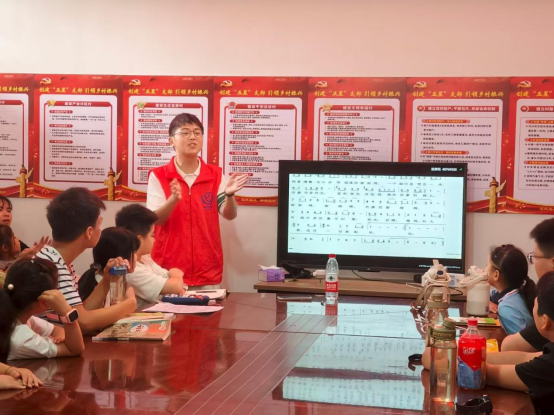 音乐课上,田宇辉与曾静怡两位志愿者化身“美育传声者”,以一曲《紫荆花盛开》,牵起学生们与旋律的奇妙联结。当悠扬的歌声在课堂上流淌,不仅是音符在跳动,更是学生们在逐句学唱中触摸韵律之美,更在“紫荆花”的意象里读懂家国同心的深意。清澈的歌声漫过十里铺村的每一个角落,成为这个夏天里,关于成长与共鸣的动人注脚。