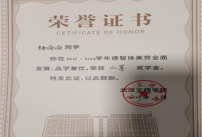 2022年4月获得武汉市2021年度优秀共青团员