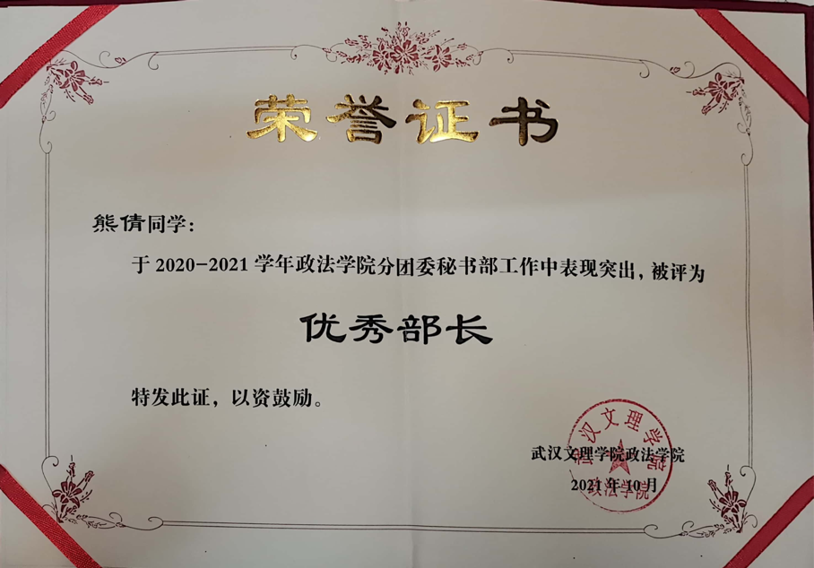 2020-2021学年获得yl7703永利集团优秀部长