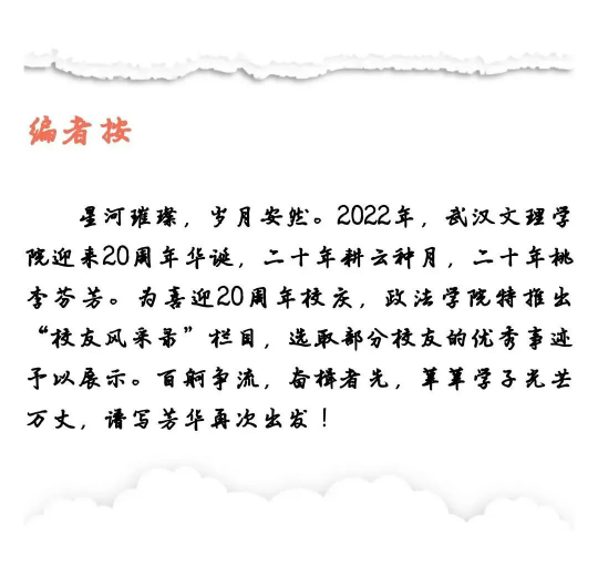 在校期间曾任文理学院yl7703永利集团秘书部部长、学生会主席,并荣获“院长奖学金”。黄鹤楼酒是湖北唯一中国名酒,自2017年毕业以来,历任黄鹤楼酒业有限公司董事长秘书、办公室主任。