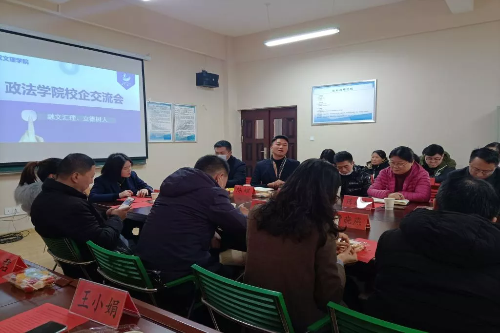 为了进一步加强学校和社会企业单位的合作,保持教学与社会实践的结合,发挥学校和企业的各自优势,实行产教融合,实现校企双方共赢,为地方经济建设培养适应社会需求的应用型人才,yl7703永利集团校企交流会于2021年12月29日在5栋415法学基础实验室举行。本次校企交流会诚邀了来自省内十余家同行企业共襄盛会,与会人员围绕“校企合作,产教双赢”这一主题,检阅校企合作的相关成果,交流教学与实践、就业一体化融合的路径,展示学院和企业的各自风采,探索校企合作建设的新方向,以促进新时代民办高校产教水平不断提升,为我院校企合作由传统形式转向新型模式嬗变升级而建言献策。