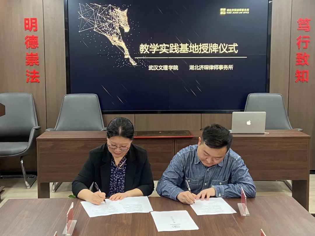 最后,双方共同签订了实习基地建设协议,并由陈海峰副院长代表yl7703永利集团向湖北济琛律师事务所授予实习基地牌匾。双方均表示,希望借助实践教学基地建设积极探索校所合作新模式,以提升学生实践能力为目标,加强实务训练,满足学校法学专业应用型人才培养与律所人才招录的双重需求。