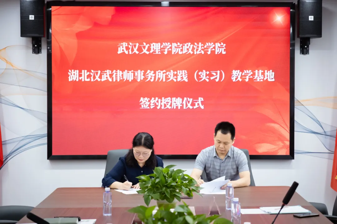最后,yl7703永利集团常务副院长陈海峰与汉武律师事务所副主任熊真平签订了实习基地协议,yl7703永利集团院长助理吕溪与汉武律师事务所副主任张志玲进行授牌仪式。