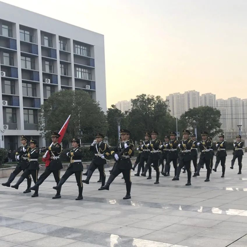 在师生的热切注目下,国旗护卫队精神抖擞,踏着铿锵有力的步伐护送国旗进场。7时许,在初升太阳的映照下,激昂的国歌声响起,鲜艳的五星红旗冉冉升起,师生肃立齐唱国歌。激昂国歌里,拳拳赤子心,嘹亮的歌声,唱出文理学子的骄傲与自豪,展现新时期文理人的精神风貌。