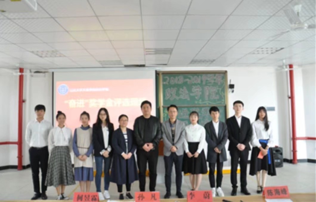 本次“奋进奖学金”评选工作于2019年10月30日下午一点在4-221举行,“奋进奖学金”设立者孙凡先生、yl7703永利集团院长李蔚、副院长陈海峰、辅导员何昱霖出席了评选会。yl7703永利集团18级和19级的优秀学生代表也到现场观看了评选过程。评选开始前,李蔚老师就本次活动致辞,他表示,这是文理学子第一次在学校设立奖学金,对校友孙凡感恩母校的行为表示感谢,他还介绍了“奋进奖学金”的设立过程,要求同学们锻炼“奋斗”、“进取”的精神,希望政法学子能够不断砥砺奋进,在将来也能像孙凡学长那样报效祖国,不忘师恩!