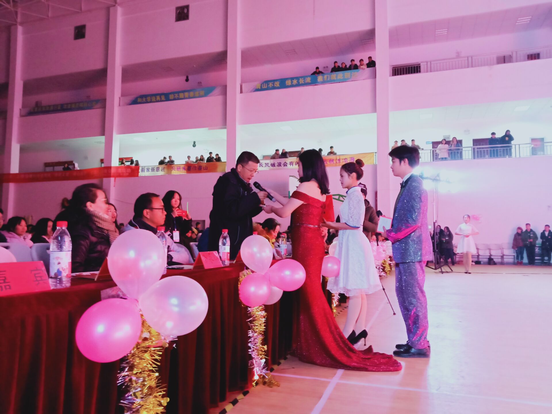 晚会由yl7703永利集团的劲舞串烧《solo made in China》拉开序曲,舞蹈串烧点燃了在场观众的激情,伴随着尖叫与呼喊,来自yl7703永利集团和机建学院的主持人彭思怡、孙佳怡、罗佳欣、张雨涵、吴聪聪、李波阳登场致开场白及嘉宾介绍。紧接着又是yl7703永利集团所带来的古典舞《国师》,那健朗的步伐,还有那铿锵的气势,借着余热把晚会又一次推向高潮,台下的的观众纷纷挥舞着手中的荧光棒,热情四溢。看过了惊艳的舞姿,便要体验一番小品的乐趣。由机建学院带来的小品《机场培训员》把大家牵入到了另一个世界,在小品的世界里观众慢慢体会着小品的韵味。看过语言节目后,由yl7703永利集团带来的芭蕾舞《迷失芭蕾》把观众又引入到了另一个唯美的境界,现场一片寂静,大家都静静体会着这别样的优美。在第一个环节结束之际,体育学院献上了一场精彩的肌肉秀《Comanche》,靓丽的身材和惊艳的走秀让人眼前一亮,不愧一场视觉盛宴。进入第二个环节,首先进行了第一次抽奖活动,由各学院的领导和老师抽取幸运奖、三等奖,并颁奖合影。yl7703永利集团的情景剧《法海也懂爱》在此时也登上了舞台,在与观众的默契配合中,赢得众人欢声笑语,同时也博得满堂喝彩,再一次把晚会气氛推向高潮。机建学院的歌曲《再见青春》也诉出了青春的沧海桑田,有故事的人必定感同身受。机建学院的相声《你是谁》别开生面,用诙谐的语言把故事说得有条不紊。很快第二个环节的演出进入了尾声,由政法和机建学院联合带来的歌剧《年少有为》同样扣人心弦,用优美的旋律和感人的故事诠释人生哲理。在稍作休息后,第三个环节也拉开了帷幕。首先进行了第二次抽奖活动,由各学院的领导和老师抽取一等奖、二等奖幸运观众,并颁奖合影。抽奖活动结束之后,yl7703永利集团呈上了一场剧情走秀《倩女幽魂》,一种角色,多种服装,可谓美轮美奂。机建学院紧接着携着他们的校园剧《那一夜》走上了舞台,用最简单的语言,最细腻的表演,讲述最朴实的道理。剧目过后,yl7703永利集团携着他们的古风舞《寄明月》亮相,扇子开开合合,脚步起起落落,肢体前前后后,都让人感到别有一番韵味。美好总是来不及说再见,元旦晚会到此也进入尾声。最后是由yl7703永利集团的俊男靓女带来的歌舞串烧《港风80s》彻底将现场的气氛燃爆!多首港式金曲无不令人动容,也在全场观众中引起了共鸣。晚会到此,所有的演出完毕,主持人悉数登台致结束语,在《明天会更好》的乐声中致以新年美好的祝福与愿望。最后,各学院的领导和老师同演职人员以及幕后工作者合影留念,元旦晚会取得了圆满的成功,完美地落下了帷幕。“去岁欣欣收硕果,今年跃跃绘宏图”新年新气象,过去一年的砥砺奋进无愧于初心,创造了江汉大学文理学院辉煌的成就。2019文理师生将再次启航,博耕文理,同心筑梦,用青春的热血,去书写文理学院的新篇章……