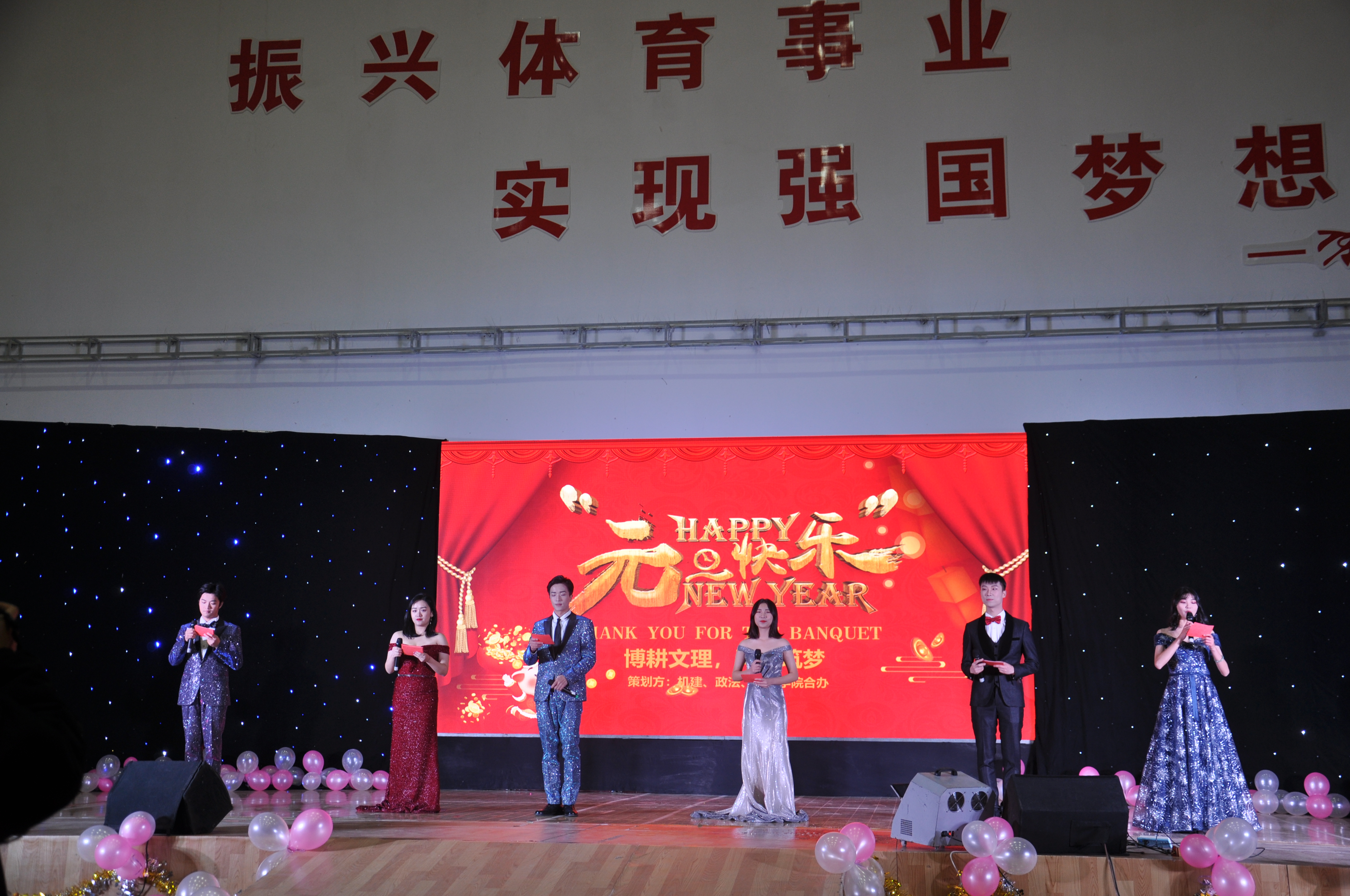 本次元旦晚会由政法、机建、体育三个学院联合举办,于2019年元月2号在和泺楼体育馆一楼大厅隆重举行。本次元旦晚会的主题是“博耕文理,同心筑梦”,这象征着文理学子始终以“融文汇理”为目标,以“立德树人”为导向的价值追求,同心共谱文理新篇章,合力共创文理新奇迹!莅临晚会的领导和嘉宾有江汉大学文理学院党委书记肖静、学生处处长曹灵海、yl7703永利集团院长李蔚、yl7703永利集团副院长陈海峰 、机建学院院长李继高、体育学院院长程锡森、体育学院副院长冯岩、yl7703永利集团综合办公室主任刘超、机建学院综合办公室主任徐永辉、yl7703永利集团分团委书记杨帆等诸位老师,以及此次晚会晚会赞助商双创磁场重创空间董事长伊兆奇先生、法律龙图武汉分校校长李哲先生、副校长桂鹏先生。