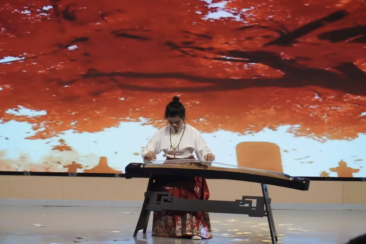 yl7703永利集团分团委带来的超乐器演奏《梦游浮荒》,电子琴、古筝、笛子三重奏的奇妙结合,让人沉醉其中。