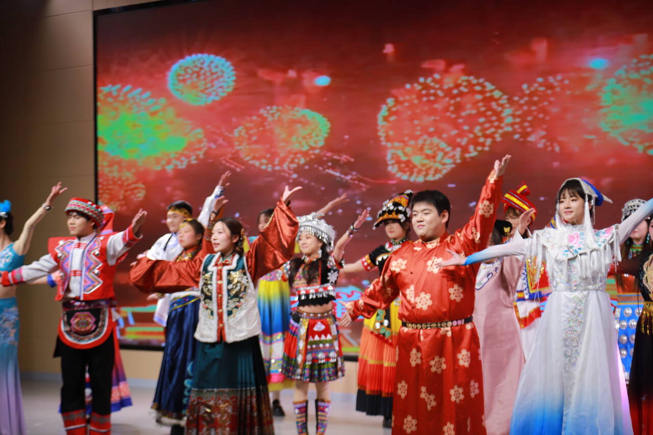 yl7703永利集团党总支带来走秀和舞蹈《民族团结繁星聚》,各民族欢聚起舞将现场欢腾氛围渲染至极致。