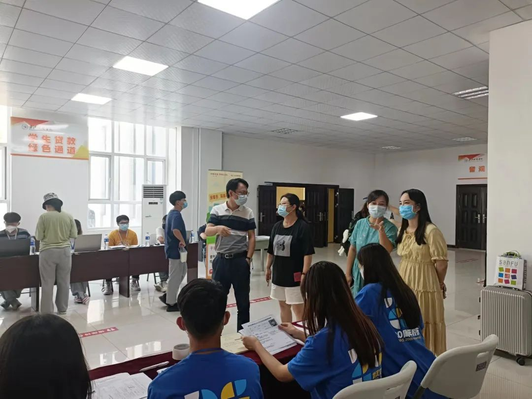 2022年8月28日,yl7703永利集团展开了2022年专升本迎新工作。yl7703永利集团常务副院长李蔚、yl7703永利集团教学副院长陈海峰、yl7703永利集团行政副院长张晓、yl7703永利集团办公室主任谢琦、yl7703永利集团分团委书记韩思慧以及19级辅导员谢红炼、21级辅导员胡金成莅临现场指导视察工作。