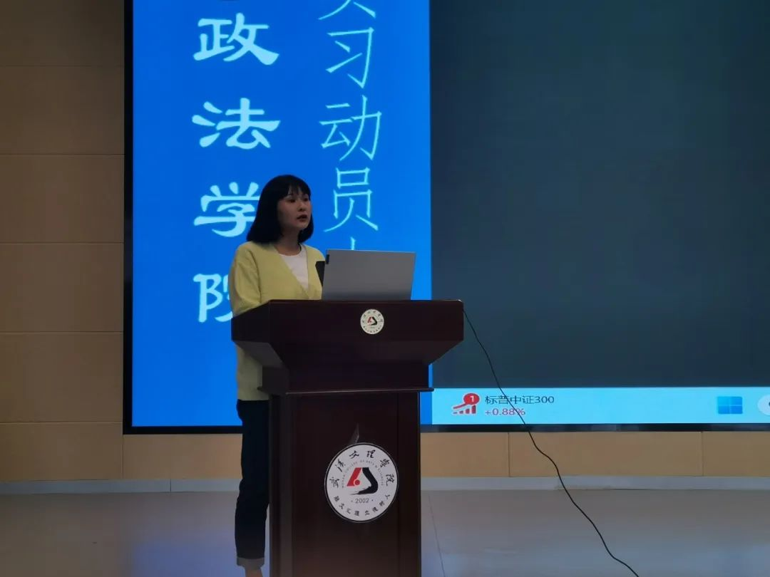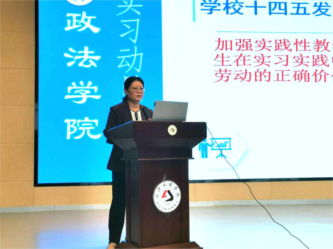 大会第五项,综合办公室主任杨云燕发言。她指出:实习是同学们职业生涯的起点,也是你们成长成才的重要阶段。希望你们能够珍惜这次机会,勇于面对挑战和困难。在实习中不断学习、不断进步、不断成长。相信在不久的将来,你们一定能够在各自的岗位上发光发热、绽放光彩!同时,杨老师结合自身的实践经验,分享了实习中的成功案例和经验教训,帮助学生们更好地规划实习生涯,明确职业发展方向。同时,还鼓励学生们要勇于尝试、敢于创新,在实践中不断提升自己的综合素质。