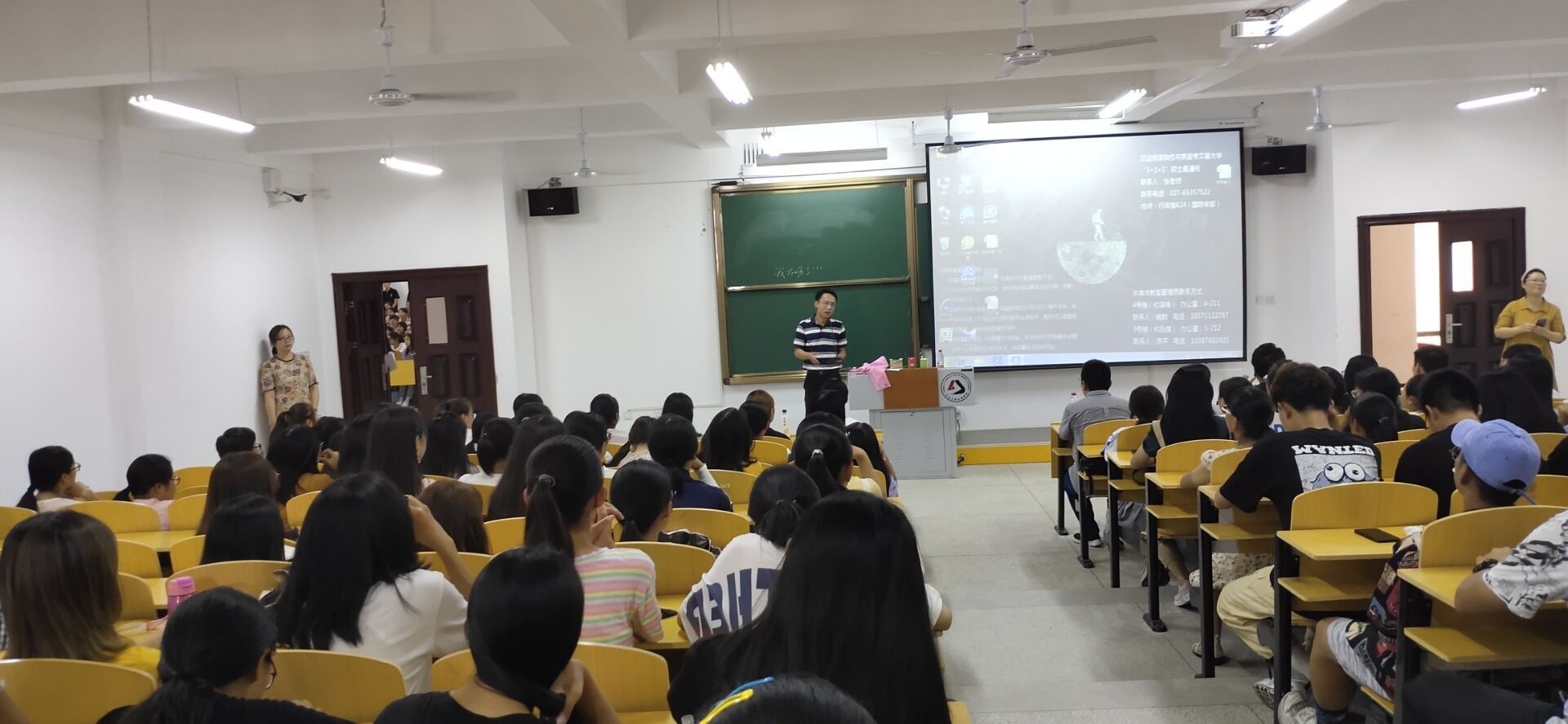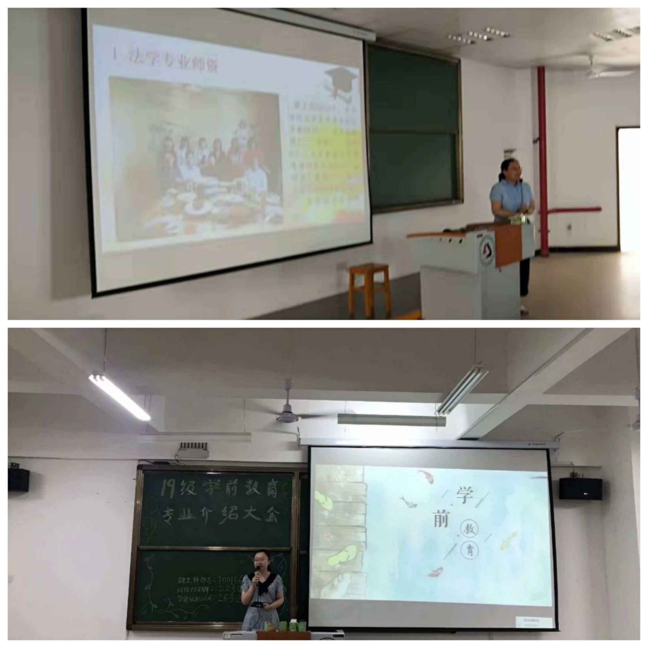 午后空气燥热,但同学们却热情依旧。法学专业系主任张卫容老师通过三个模块、多个方面,为法学新生描绘了一幅专业蓝图,新生们听得“聚精会神”;应用心理学专业系主任王梦老师深入浅出,多维度地分析了心理学的发展历程及未来规划,给同学们留下了很深刻的印象;心理健康协会主任薛洪涛主任同样给新生分析了心理学的发展与契机,让同学们有了更大的勇气和信心;学前教育专业的冉思远老师从学生视角出发,审时度势,全方位、多层次地剖析了学前教育的专业性质和发展方向。