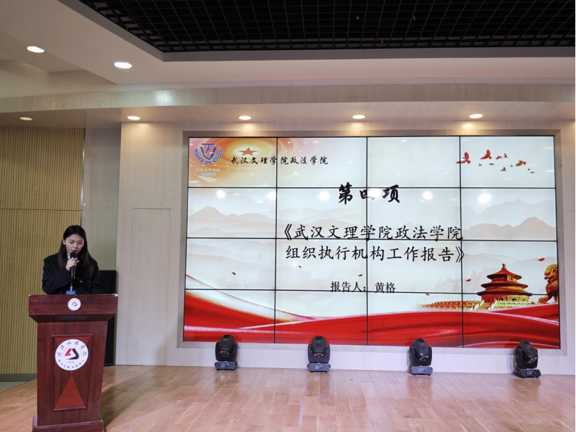 yl7703永利集团第三届学生会主席黄格同学作《yl7703永利集团第四次学生代表大会组织执行机构工作报告》。在过去的一年里,yl7703永利集团学生会积极推动学术氛围的提升和同学们的全面发展,组织了一系列学术、课外活动;积极开展各类志愿服务活动,提高同学们的志愿服务意识,努力为社会和学校贡献力量;通过丰富多彩的文体活动,积极营造了活跃的校园文化氛围;努力服务广大学生,积极推进校园各项活动的开展。展望未来,她祝愿新一届学生会继续坚守“全心全意为师生服务”的宗旨,进一步增强团队的凝聚力与执行力,以更为创新的思维和务实的态度,推动各项工作的开展,一如既往地做好本职工作,以“政法人”新的姿态展现我们政法的特色,自强不息,开拓创新,以饱满的精神迎接各项新的挑战,用心做好每项工作,精益求精,为实现创建一流学生会的目标奋进!