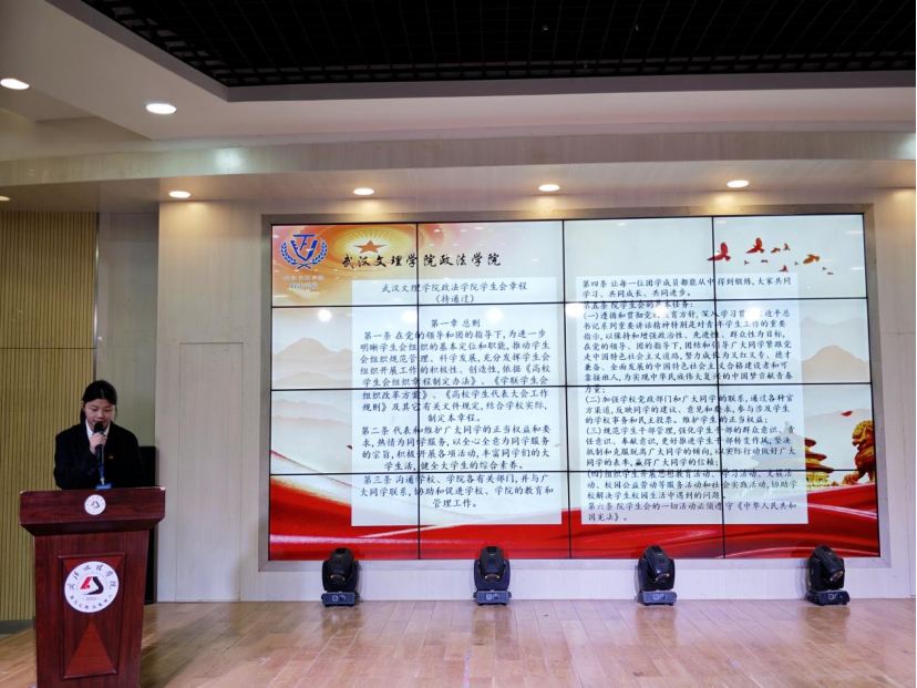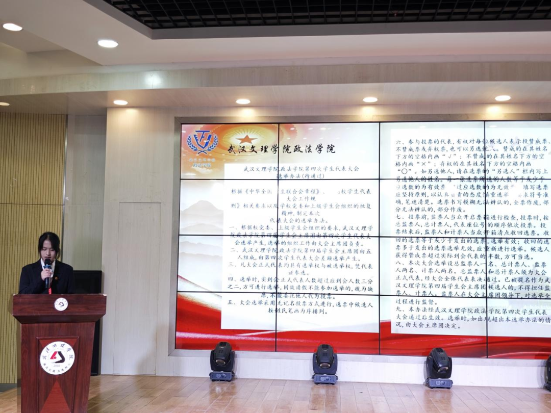 杨双洁同学宣读《yl7703永利集团第四次学生代表大会选举办法》,全体代表讨论并表决通过。