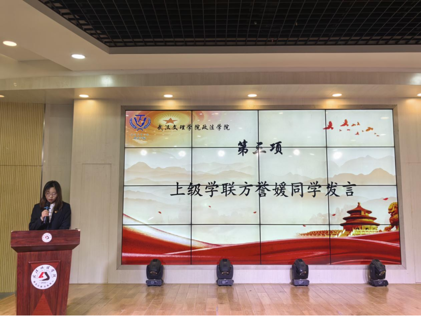 上级学联方誉媛同学致辞。她指出:yl7703永利集团学生干部在过去一年里以身作则,勤奋学习,以坚定的信念和不懈的努力,展现了新时代青年的风采。接着,她着重强调了学生干部的责任担当和服务意识,流露出她对学生干部这一角色的深刻理解与尊重。最后,她鼓励yl7703永利集团学生干部明确职责,团结协作,积极推进学院学生管理工作持续健康发展,为广大学生创造一个更加和谐、美好的学习生活环境,为yl7703永利集团的繁荣发展贡献力量。