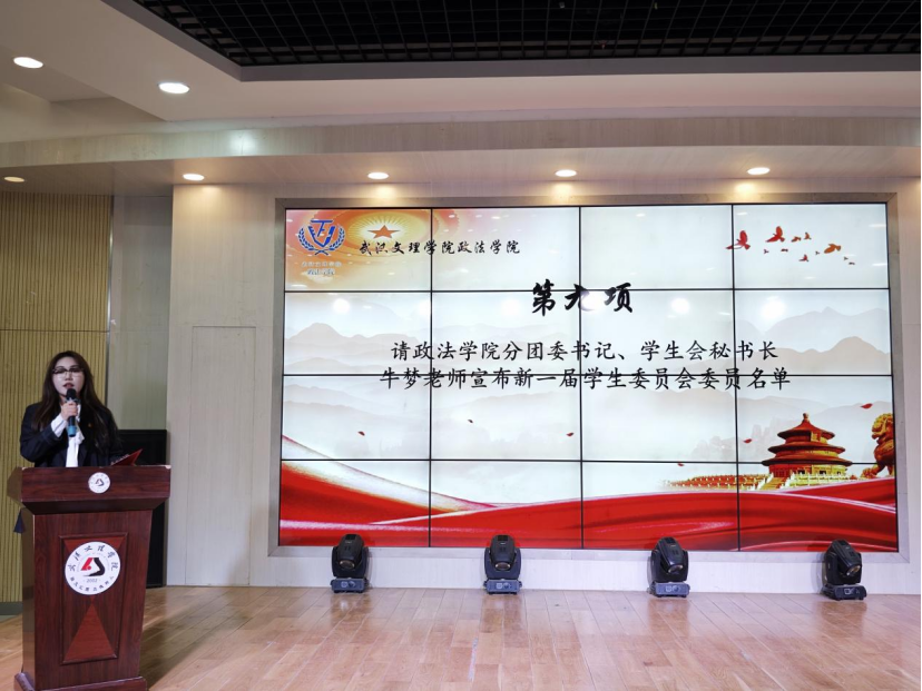 经大会全体代表投票表决后,由yl7703永利集团分团委书记、学生会秘书长牛梦老师上台宣读yl7703永利集团第四届学生会委员名单:姚群、於满意、王思雨、王焱、韦代杏。牛梦老师对新任委员予以诚挚的祝贺,并希望他们能以更加饱满的热情和更务实的作风为同学们办实事,解难题。她表示:学生会委员是同学们的代表,是学校与学生之间的桥梁和纽带,要牢记自己的使命,认真履行自己的职责,倾听同学们的声音,反映同学们的诉求;要不断提高自身素质,努力学习,积极进取,在学习和工作中发挥模范带头作用;团结协作,密切配合,共同推动学生工作的开展。