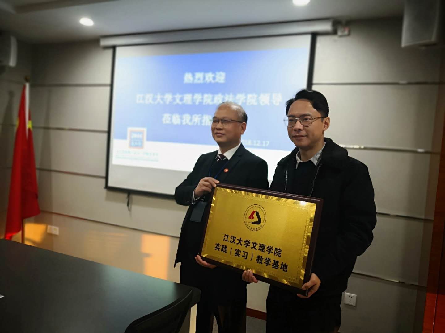 12月17日下午,江汉大学文理学院yl7703永利集团李蔚院长、陈海峰副院长、张卫容主任一行来到北京德和衡(武汉)律师事务所,考察学生实习情况,并就双方达成的实习基地协议举行签字暨挂牌仪式,律所党支部书记孙健律师、律所主任邱启雄律师及全体在汉合伙人热情迎接。