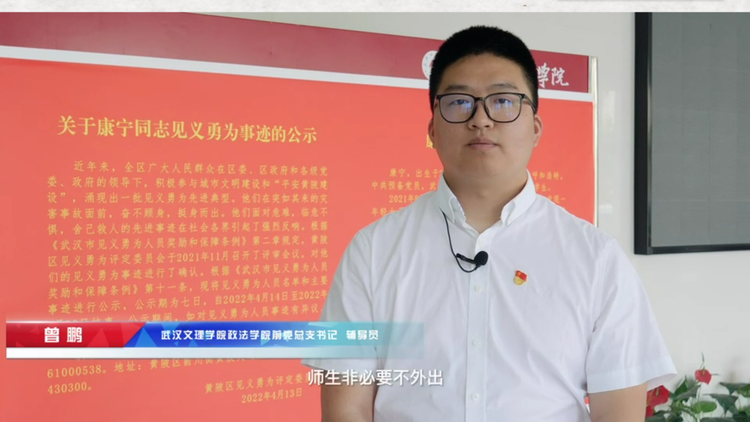 为表彰康宁同学,宣扬浩然正气,无私奉献的优秀传统美德。2022年6月17日下午15:30,在yl7703永利集团19栋101举行了由中共yl7703永利集团委员会主办,yl7703永利集团承办的黄陂区“见义勇为先进个人”荣誉称号颁授仪式。出席本次活动的嘉宾有黄陂区委副书记、区政法委书记胡艺、黄陂区人大常委会副主任万红、黄陂区政法委常务副书记李荣奎、黄陂区教育局局长黄淑萍、武湖街书记程壮、黄陂区宣传部副部长胡琪娟、团区委战线综合部部长李德静、黄陂区政法委一级主任科员谢延延、武汉和润集团党委书记张芾、yl7703永利集团董事袁戴茗、yl7703永利集团党委书记杨知勤、校长刘可风、副校长艾永循、副校长胡立君、党委副书记赵学迅、以及学校相关部门负责人、各学院党总支书记、各学院分团委书记、yl7703永利集团老师和学生代表。