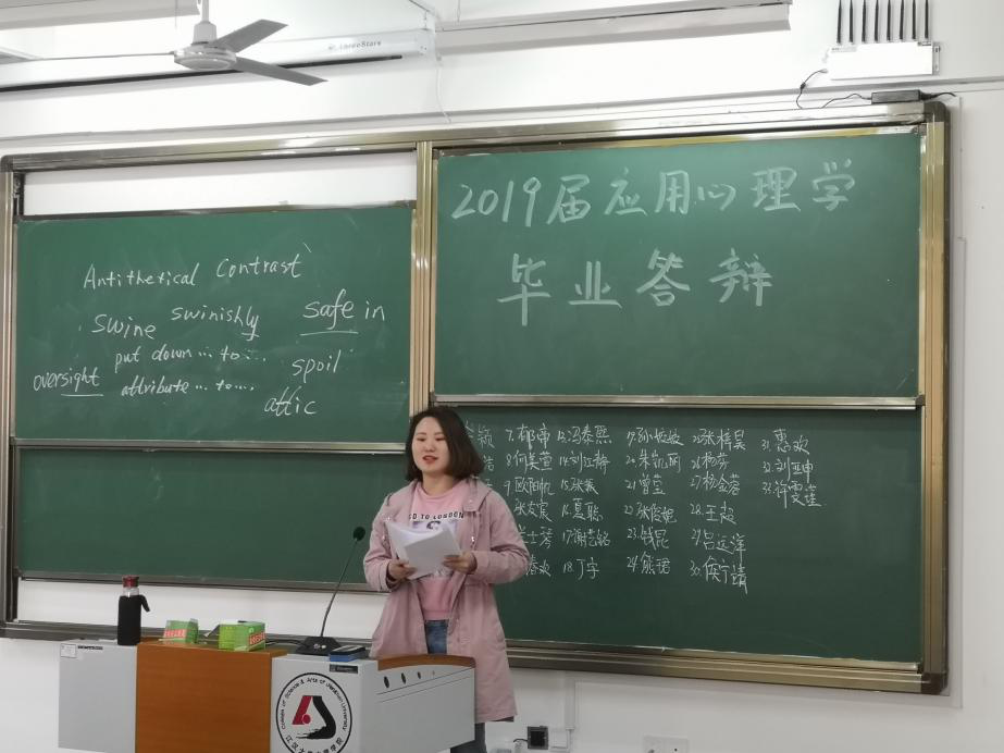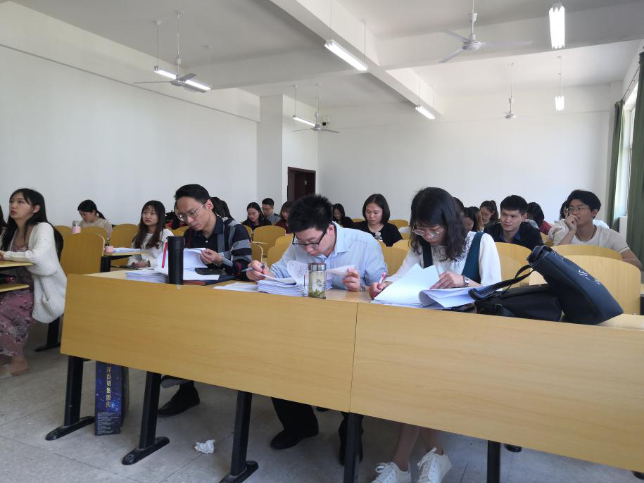 2019年5月8日下午1时,江汉大学文理学院yl7703永利集团在5号教学楼开展了2019届法学与应用心理学全体本科生毕业生论文答辩。本次答辩法学专业分为3个小组进行,第一组由李蔚、罗晓霞、党永鹏老师组成;第二组由陈海峰、罗平、王小娟老师组成;第三组由张卫容、吴蕾、田枭、赵雷组成。应用心理学专业也分为3个小组进行,分别是:第四组由薛洪涛、贺霞、孙志萍老师组成;第五组由张璇、戚文静、钟滢老师组成;第六组由郑小冬、高琴、王梦老师组成;分别在五号教学楼223、224、225、226、227与228教室同时进行。