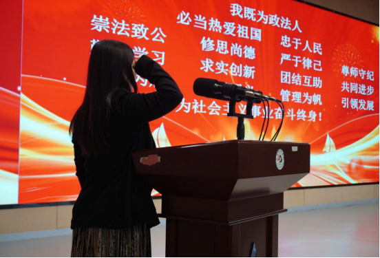 今日的宣誓明志,点燃明日的复兴之梦。国家政法事业的未来在大家肩上,中华民族伟大复兴中国梦的实现更汇聚我们每一名青年学子的力量。