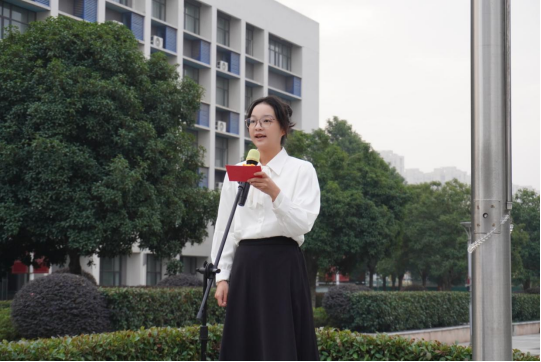 24级法学5班的邢舒心同学作为学生代表进行了《以青春之名,守护“火焰蓝”下的平安》的演讲。她以即将到来的“国家消防日”为切入点,指出“119”不仅是应急号码,更是校园安全自律的标尺与对消防员的致敬。她呼吁同学们将安全意识融入日常,用法治精神筑牢防线,让“平安校园”成为共同的生活篇章。这场演讲将青春责任与安全意识、法治思维相融合,引发了在场师生的共鸣。