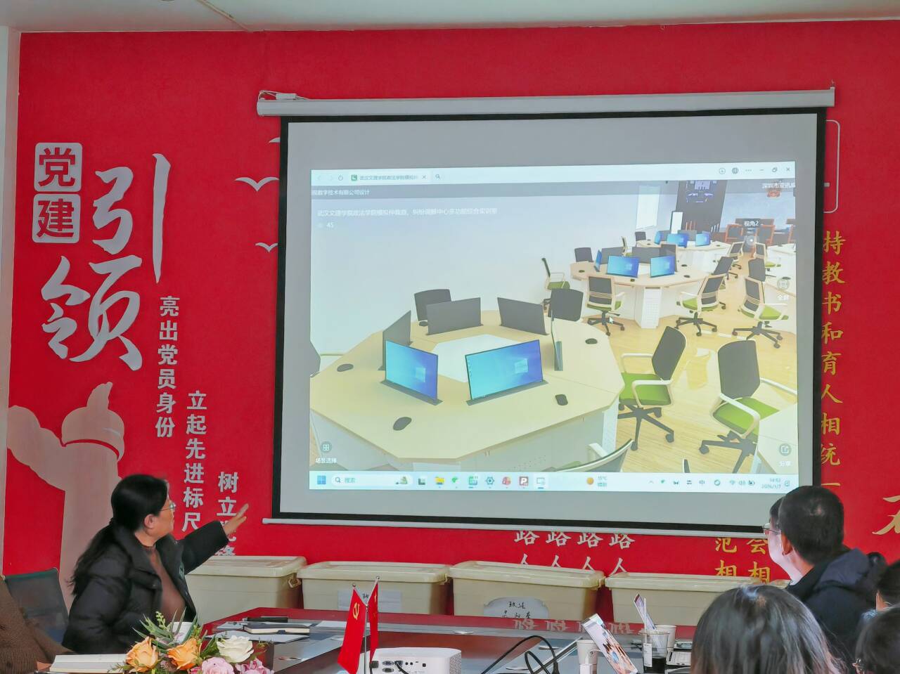研讨环节,亚讯威视技术团队通过设计图、系统演示与案例视频,详细展示了初步规划的法学实验室建设方案。该方案涵盖智能庭审系统、多媒体证据展示、远程视频参与、庭审全程录音录像、实时语音转写、案件管理平台等模块,充分体现“科技+法律”融合特色,旨在构建高度仿真的审判环境与高效便捷的教学管理平台。