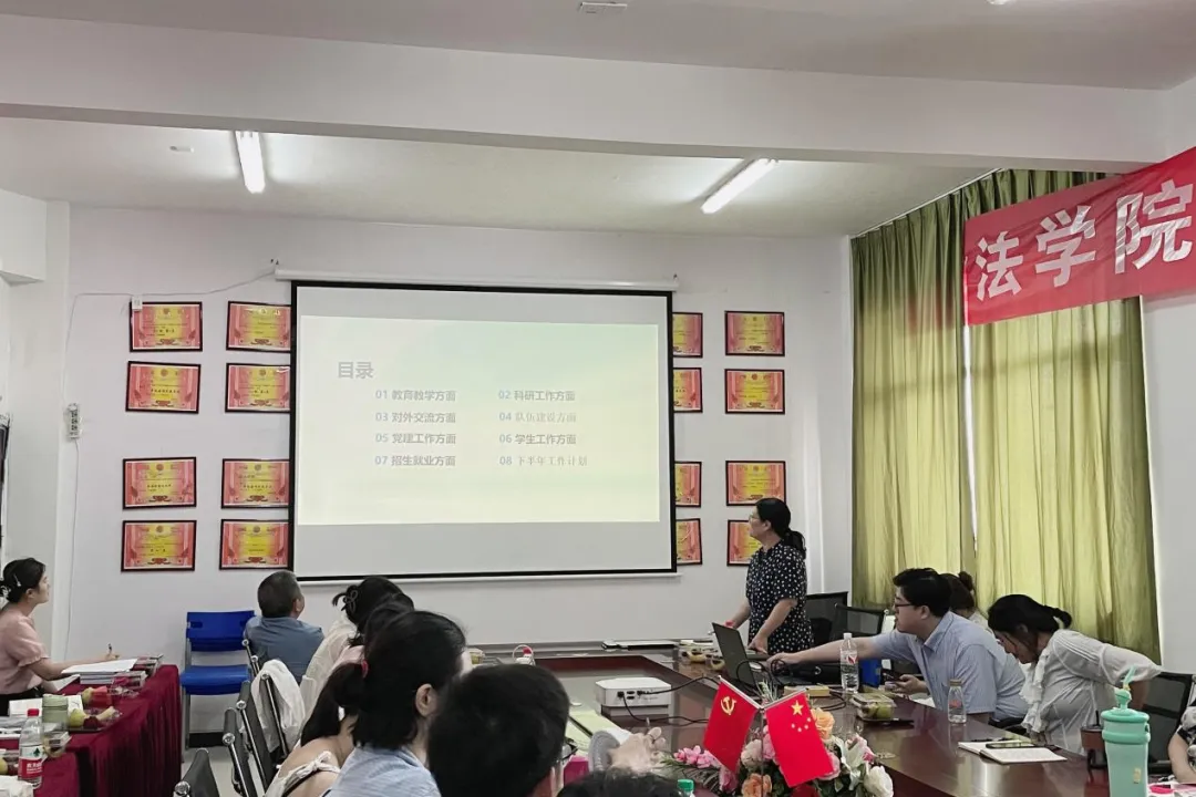 会议伊始,陈海峰院长就本学期的教学工作开展情况进行了全面汇报。分别从课堂教学、科研工作、对外交流、师资队伍建设、学院党建工作成效、学生工作以及招生就业方面对本学期工作做出详细深刻的总结,最后重点介绍了下半年学院总体工作计划,对全体教师的工作安排提出科学合理的建议。