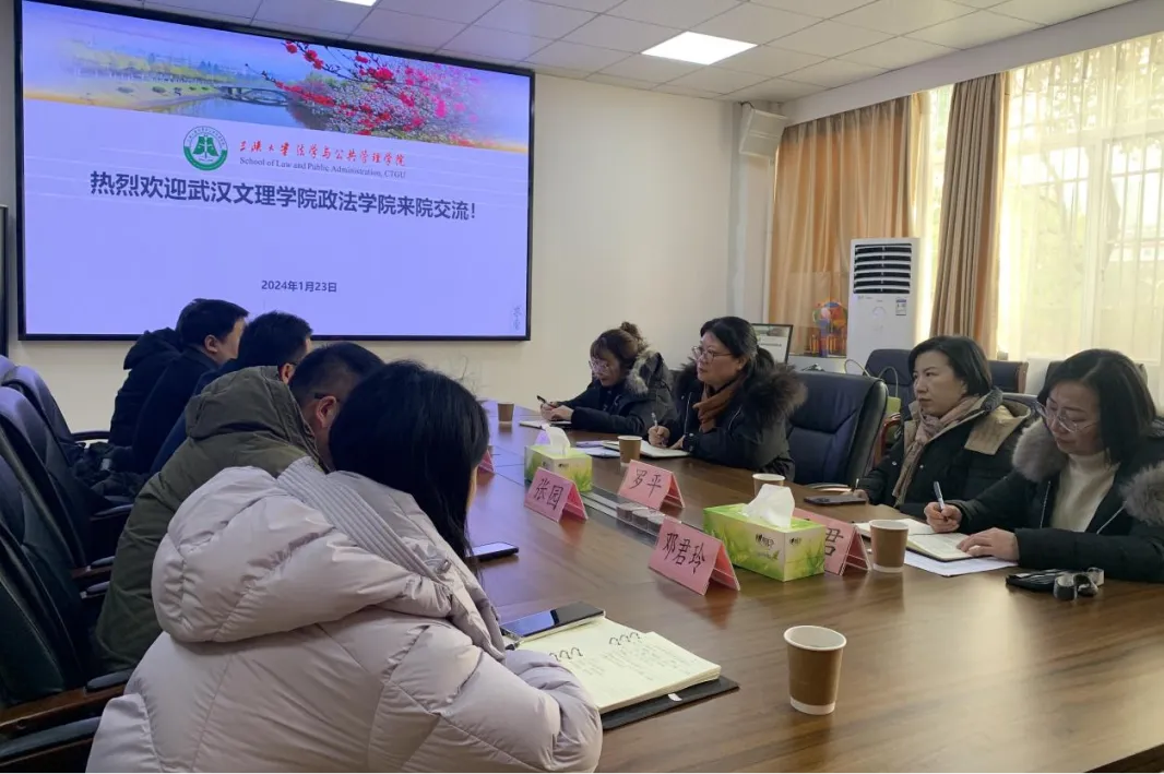 三峡大学法学与公共管理学院副院长石丹淅热情接待。法学与公共管理学院法学系主任陈军、公共管理系主任张园、法学系副主任刘子龙、教学办公室主任邓君玲参加了座谈交流。