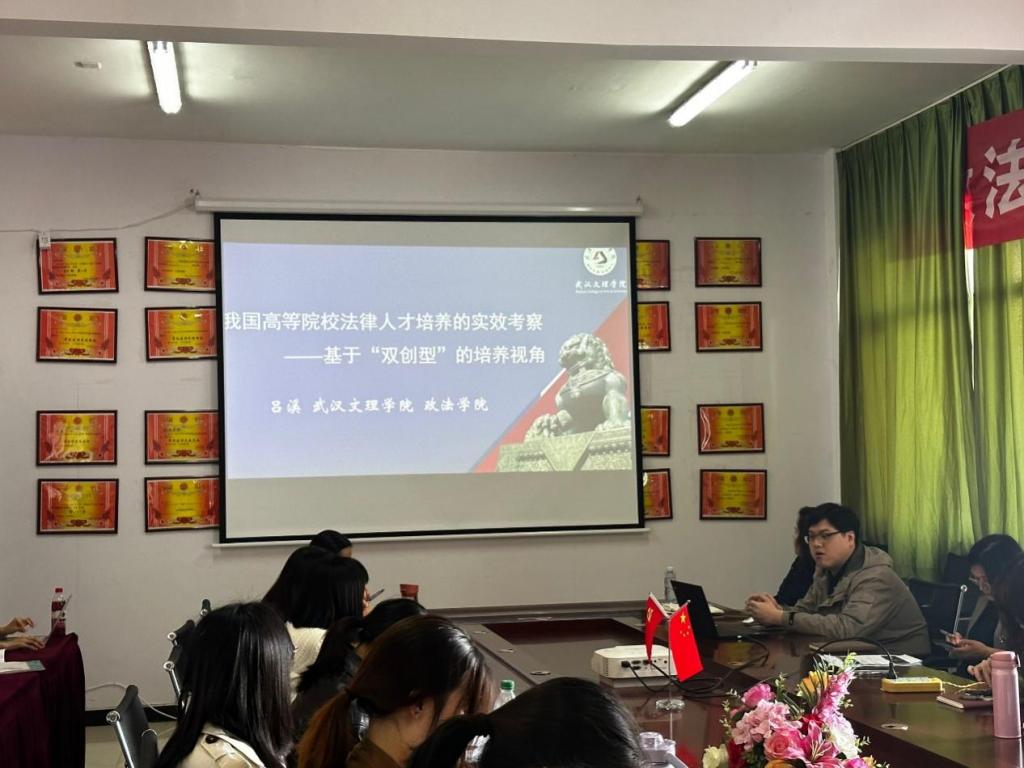 首先进行分享的是吕溪老师。吕溪老师此次分享的主题是:《我国高等院校法律人才培养的实效考察——基于“双创型”的培养视角》,围绕什么是“双创型人才”、我国高等院校法律人才培养机制的发展和成效、我国高等院校法律人才培养的不足及溯因、我国高等院校法律人才培养的目标指引四个方面展开。吕溪老师指出,随着社会的不断发展和教育改革的深入推进,教师们必须不断更新教育观念,提高教学水平,才能培养出更多优秀的法律人才。提到如何培养法律专业人才时,吕溪老师强调,“双创”不可以简单地理解为创办企业,而应该是培养既具有法学专业基础只是又富有创新精神与创造性,能够将创新智慧转化为现实成果的法律人才。需要注意的是,目前在法学专业人才培养上,存在供需不平衡的问题,由于职业能力培养和专业培养的错位,法学专业毕业生的就业认可度目前不尽如人意。在培养路径上,吕溪老师分别从“理念转换”、“教师队伍打造”、“教学模式更新”几个方面精准总结了对法学人才培养的思考,让在座的各位老师更加明晰了今后在教育教学方面的努力方向。
