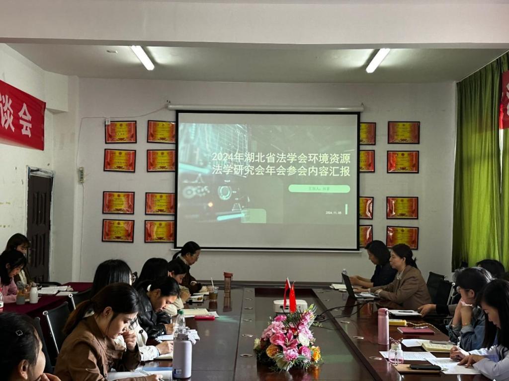培训的第三阶段是田菲老师为大家分享了2024年湖北省法学会环境资源法学研究会年会参会内容。分别从碳普惠机制的司法适用、认购碳汇的法律适用、环境法领域惩罚性赔偿制度检视、气候变化侵权比例责任的理论建构、恢复性司法背景下生态修复责任的环境刑事司法适用等方面进行了介绍。围绕“双碳目标的法治保障”、“流域综合治理的理论与实务”、“环境法律责任的理论与实务”、“生态环境立法与执法”等主题,田菲老师为大家讲授了碳普惠制度的作用,明确了行政法律责任的执行,介绍了相关的赔偿制度。探讨了生态修复与金钱类责任的分歧与困境,并提出了修复构建路径。这些知识拓宽了教师们的视野和思路,也激发了大家的思考。