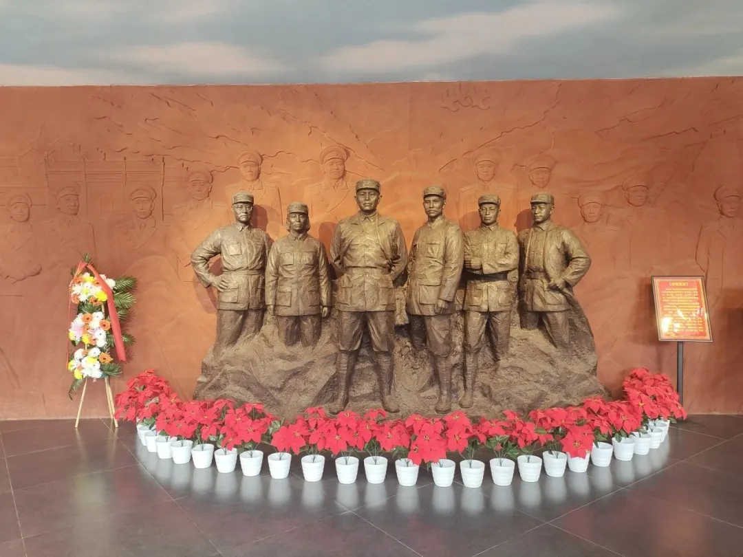 劳动教育的最后一天,同学们早早起床前往新四军第五师历史陈列馆进行参观学习。在老师的带领下,同学们列着整齐的队伍在革命文化广场上进行升国旗仪式,全场庄严肃穆,大家高声齐唱国歌,国旗高高飘扬在陈列馆门前。升旗仪式结束,同学们列队进入展馆,向革命先烈敬献花篮,并向先烈们深深地三鞠躬。随后,大家分批参观,听取引导人员讲解姚家山的历史、解说革命事件、介绍英雄先烈事迹。游览学习结束后,同学们在展馆门前挥舞旗帜,在那一抹青春洋溢的色彩中,仿佛又看到了先烈们的英勇身姿,又回到了革命抗战的年代。经历了此次红色革命教育的洗礼,相信同学们今后会更敬重革命先烈,更加坚定铭记历史的初心。