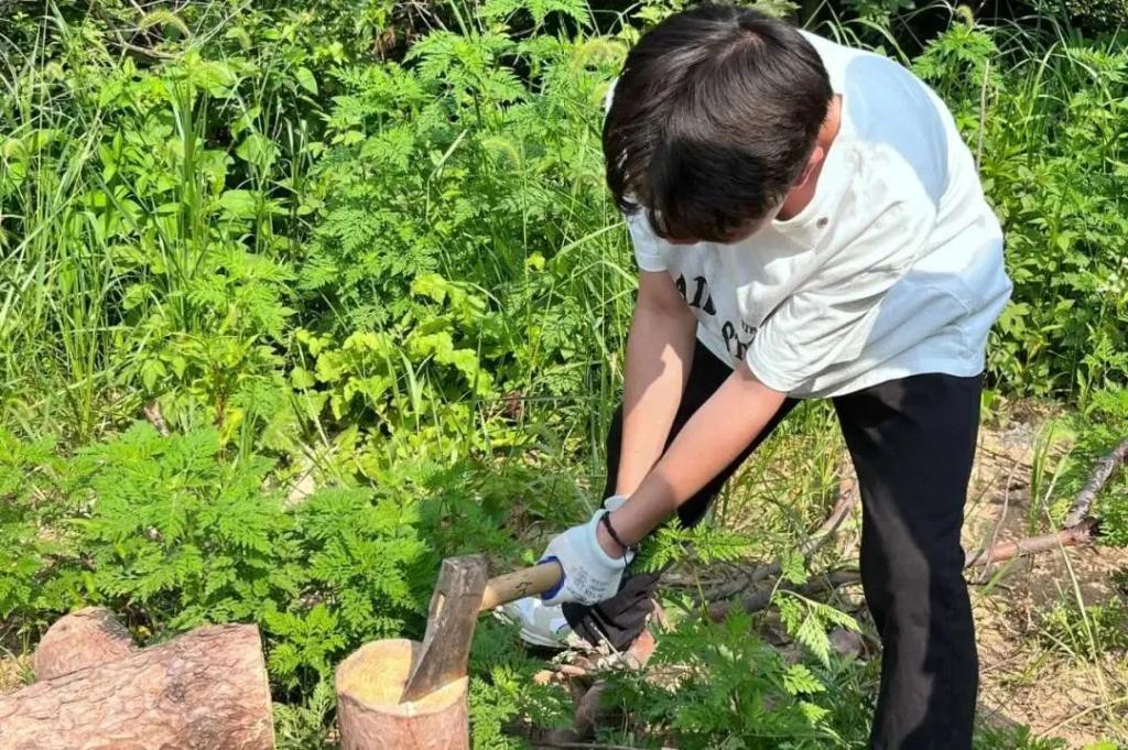 此次“移花接木”中,同学们深入自然,上山入林、砍树拾木。拿着手套、木锯、斧头等劳动工具,分成若干小组,在排长的指示和安排下拾柴、劈柴、运柴。为了寻找和挑选合适的柴火,同学们在确保自身安全的前提下,将柴火劈成合适大小,以便用于灶台起火。通过亲身体验劳动的过程,培养了他们对自然环境的尊重,增强了环境保护意识,同时也锻炼了他们的体能和团队协作精神。