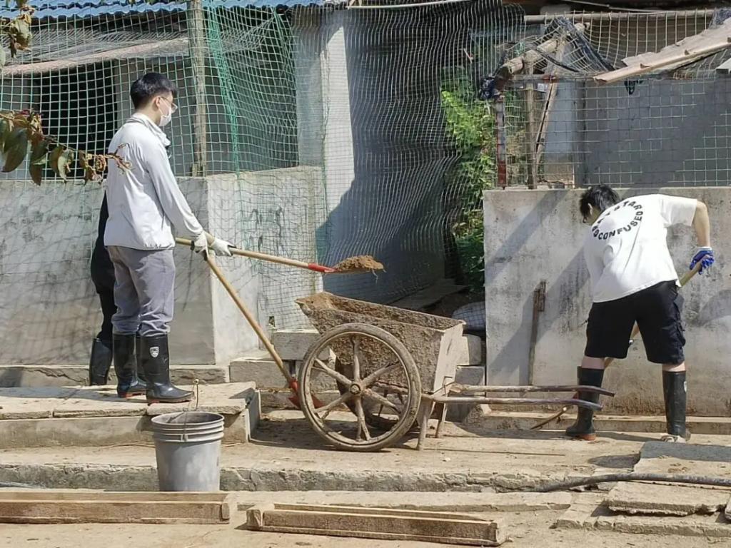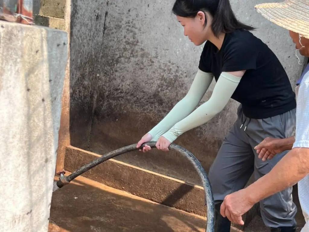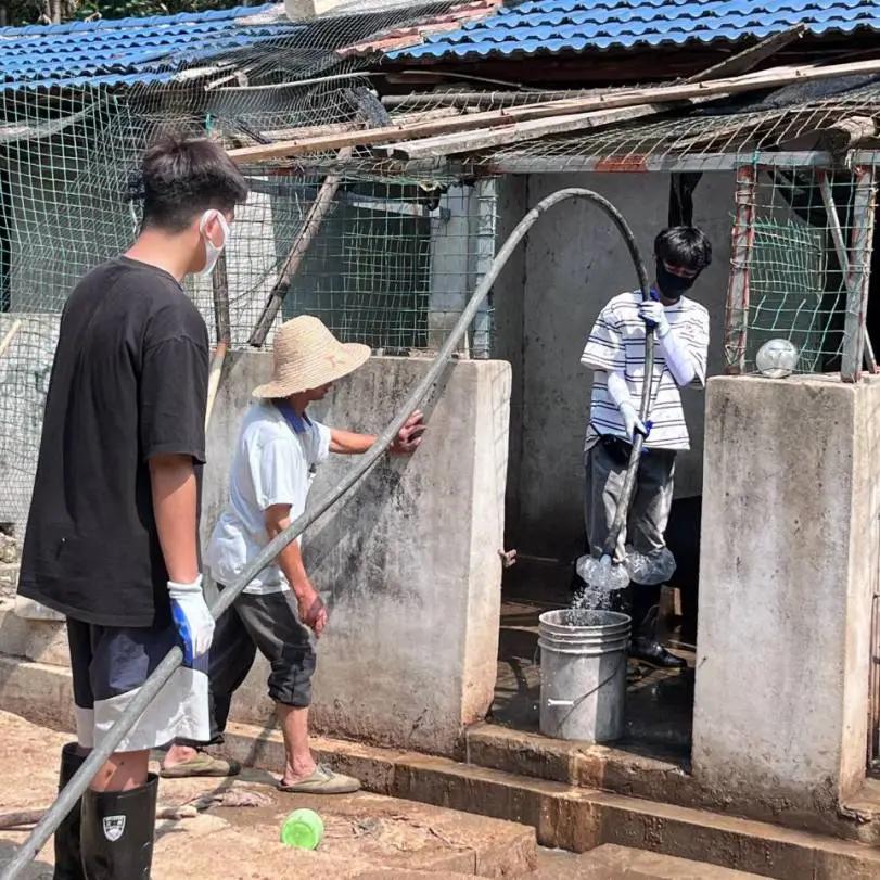 一屋不扫,何以扫天下。同学们在六畜兴旺这个环节进行了猪圈清扫,为山庄饲养的猪畜提供更干净舒适的生活环境。同学们分工明确,男生主要是铲运猪畜生活环境内的垃圾,女生主要运用高压水枪冲洗猪圈、清理路面残留垃圾。这个过程不仅提高了同学们的团队协作能力,也增强了他们之间的默契度和凝聚力。