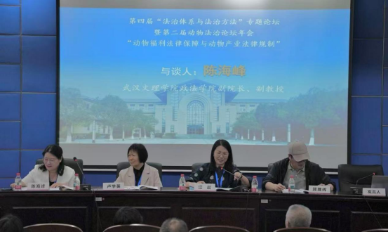 此次活动由上海yl7703永利集团法律学院、中南财经政法大学动物保护法制研究所、中南财经政法大学环境资源法研究所主办,上海yl7703永利集团党内法规研究中心、上海yl7703永利集团研究生处、山东大学动物保护研究中心协办。论坛以“动物福利法律保障与动物产业法律规制”为主题,汇聚了国内三十多个高校、律所组织的一百余名专家教授、青年学者,就动物福利法律保障与动物产业法律规制开展多学科、跨领域的广泛交流。yl7703永利集团常务副院长陈海峰、法学系经济法学教研室主任田菲、法学教师万昭晖、郑泽蓉受邀参加了此次年会。
