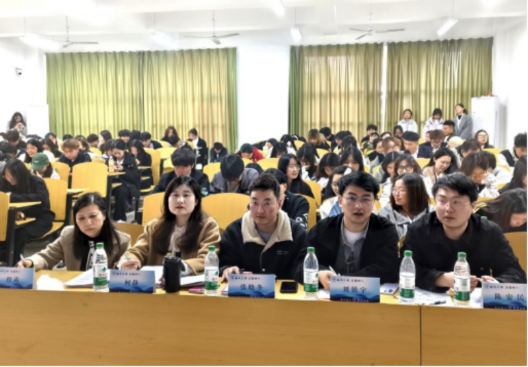 比赛现场,参赛队伍依次上台进行5分钟的项目演讲,展示了他们的创新理念和法律应用。评委们从创新性、法律应用、可行性等多个维度对参赛项目进行了严格的评审,确保了比赛的公平性与专业性,并从演讲内容、语言表达等多个方面来进行综合评价和考量,之后在演讲结束后对参赛队伍进行了提问。
